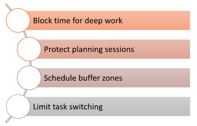 Time-blocking means assigning specific hours to specific actions inside your productivity plan. Instead of reacting to the day, you control it.