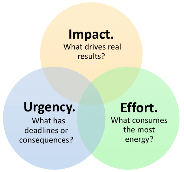 Once everything is more understandable and visible, apply prioritization using three filters: