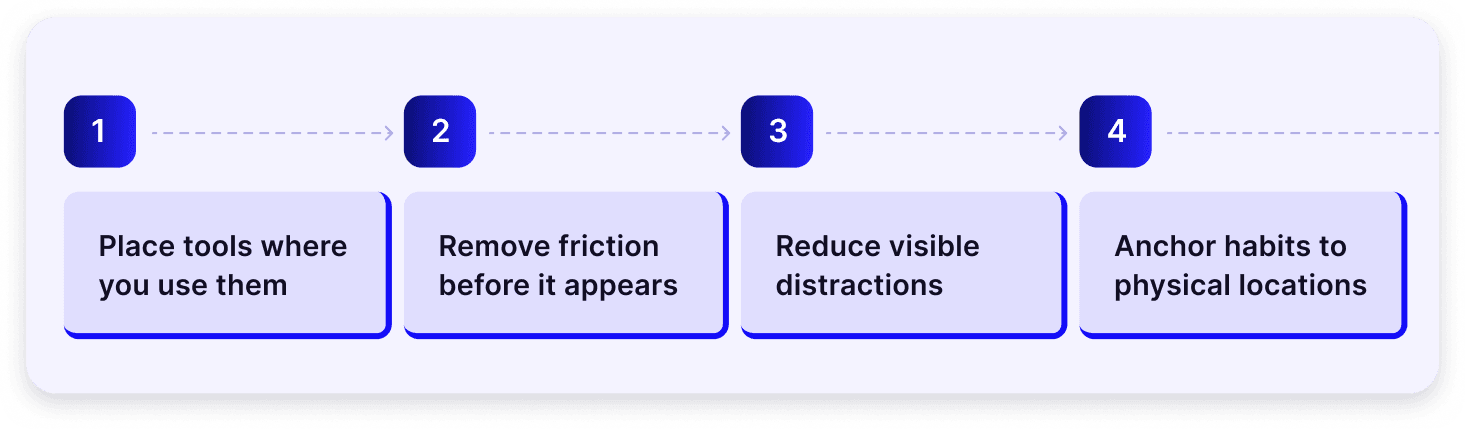 Your environment silently controls your behavior. If your space makes action harder, no amount of motivation will win. So, in addition to the listed Japanese techniques to overcome laziness and procrastination, you should also adjust the space around you