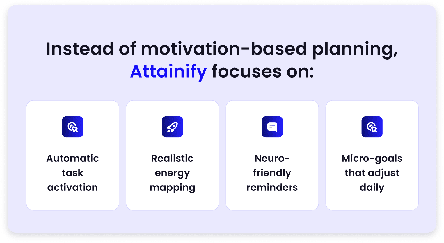 If willpower keeps failing you, it isn’t your fault. It’s the system you’re trying to operate inside. Attainify is built for people struggling with ADHD procrastination and chronic follow-through issues.